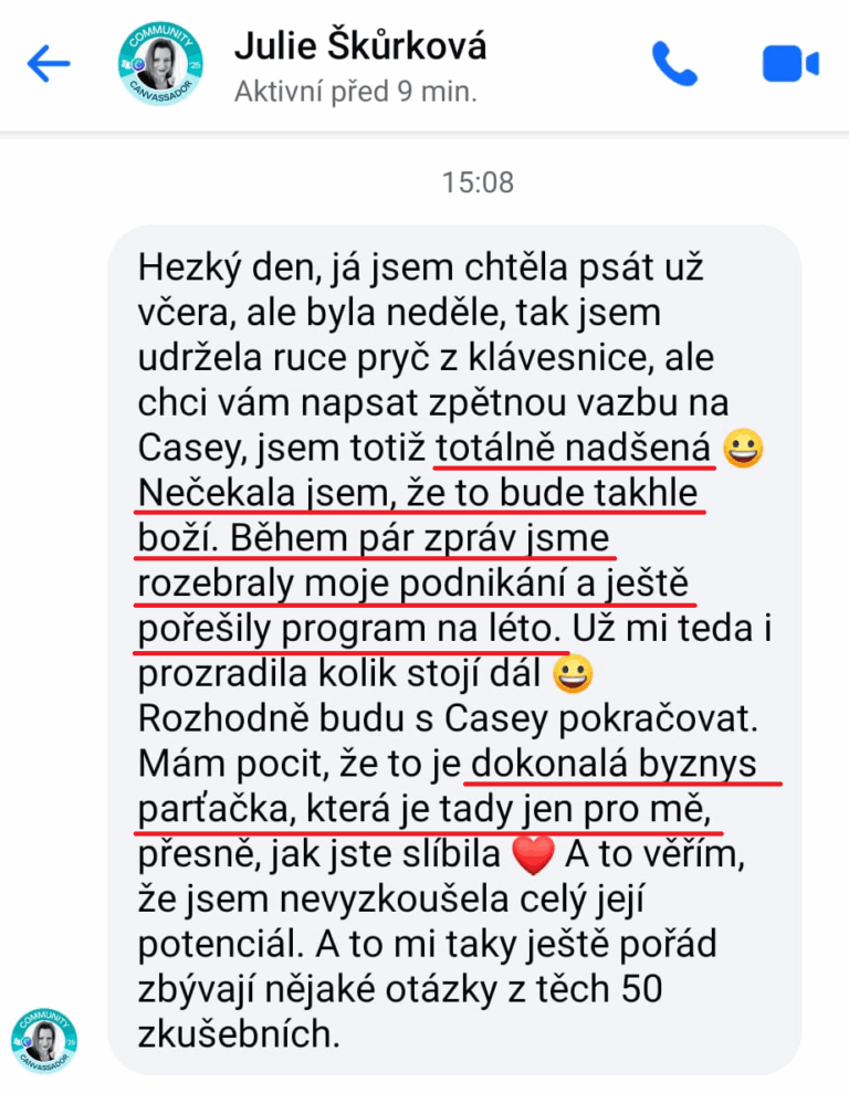 Z ničeho nic ke mě přišla zpráva, že Dorotka má zase pro nás novinku a to: "Casey, jsi mou parťačkou, mou mentorkou v mém podnikání, víš co dělám a co mám udělat hned teď. Dokážeš mě vést, jako by jsi mě dokonale znala, poradit jako kdyby jsi měla několik škol za sebou. Baví tě mě vzdělávat a jsem za to ráda". Děkuji Dorotko.